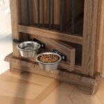 This furniture-style dog crate features a modern farmhouse design with dual-purpose functionality, designed to blend seamlessly into your living space while providing a secure retreat for your pet. Ideal for apartments, family rooms, or bedrooms, it combines stylish home décor with durable construction and thoughtful pet-focused features like 360° rotatable feeding bowls. Built with heavy-duty MDF wood and reinforced iron bars, it ensures long-lasting durability while doubling as a practical side table or nightstand.