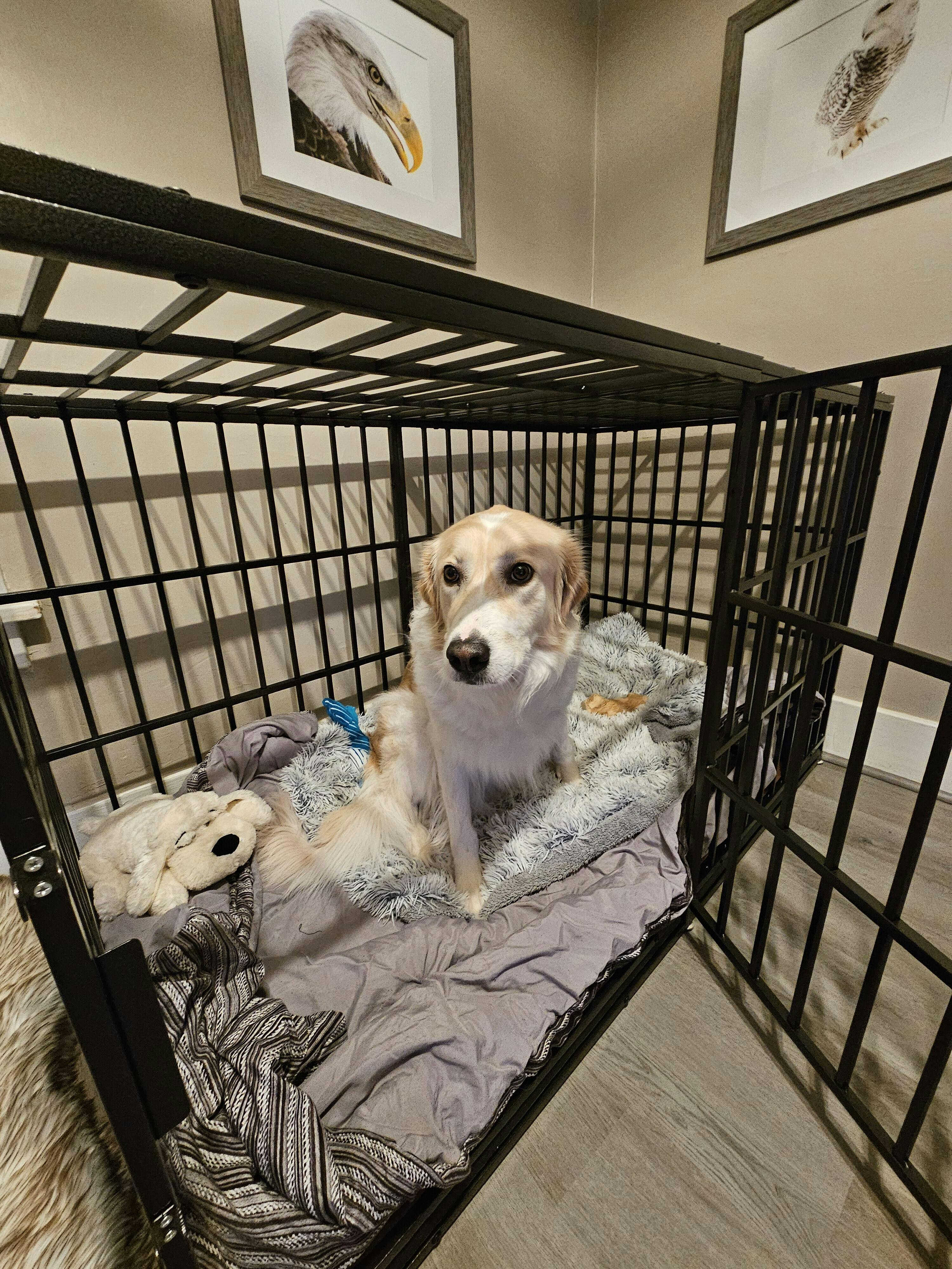 Our XXXL heavy duty dog crate is designed specifically for big, anxious dogs who are prone to escaping from normal plastic or wire cages. Measuring 60 inches in length, it’s one of the largest metal indoor kennels available, ideal for large and extra-large breeds up to 150 lbs, including Great Danes, Cane Corsos, Golden Retrievers, German Shepherds, and Labradors.