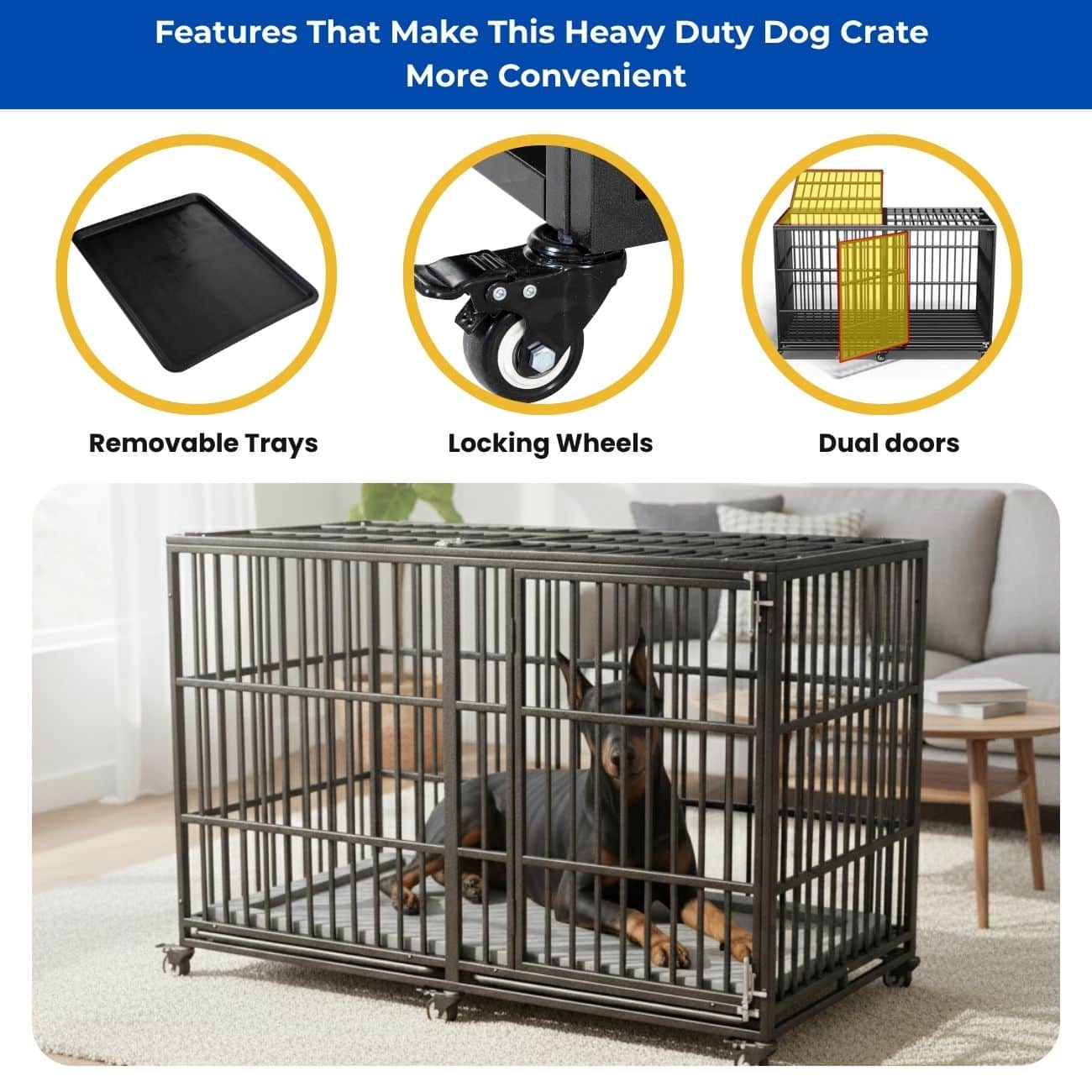 Whether you use it at home or in a training setting, this crate is a functional, high-end solution that offers strength, mobility, and peace of mind for owners of large dogs. Itโs not just a kennelโitโs a secure, comfortable living space made to last through every stage of your petโs life.