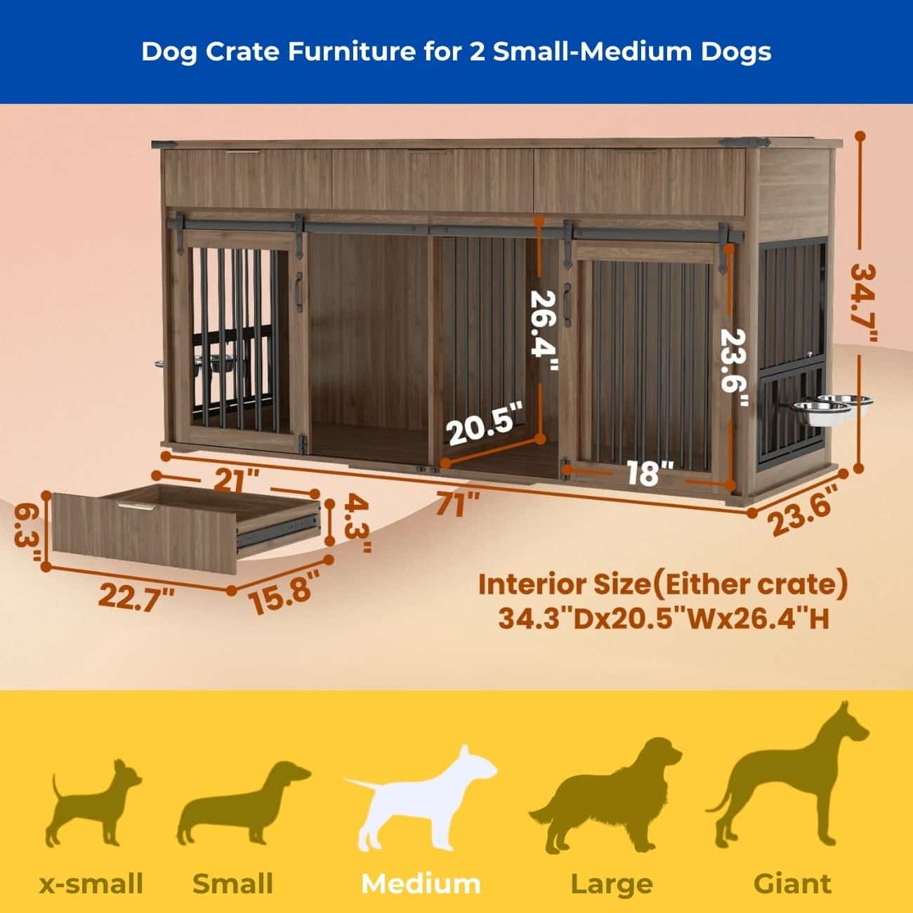 - Extra large double dog crate furniture for two small-to-medium dogs