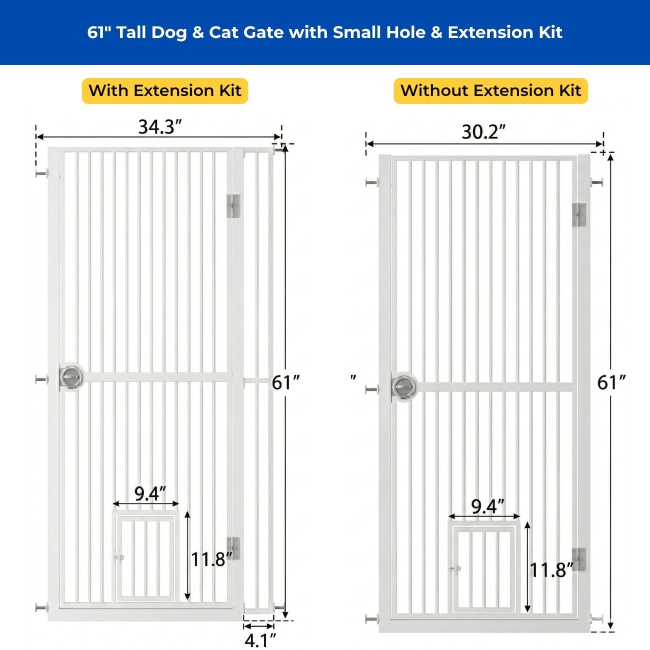 • Extra tall gate design (61 in.) keeps strong-jumping furbabies from leaping over.