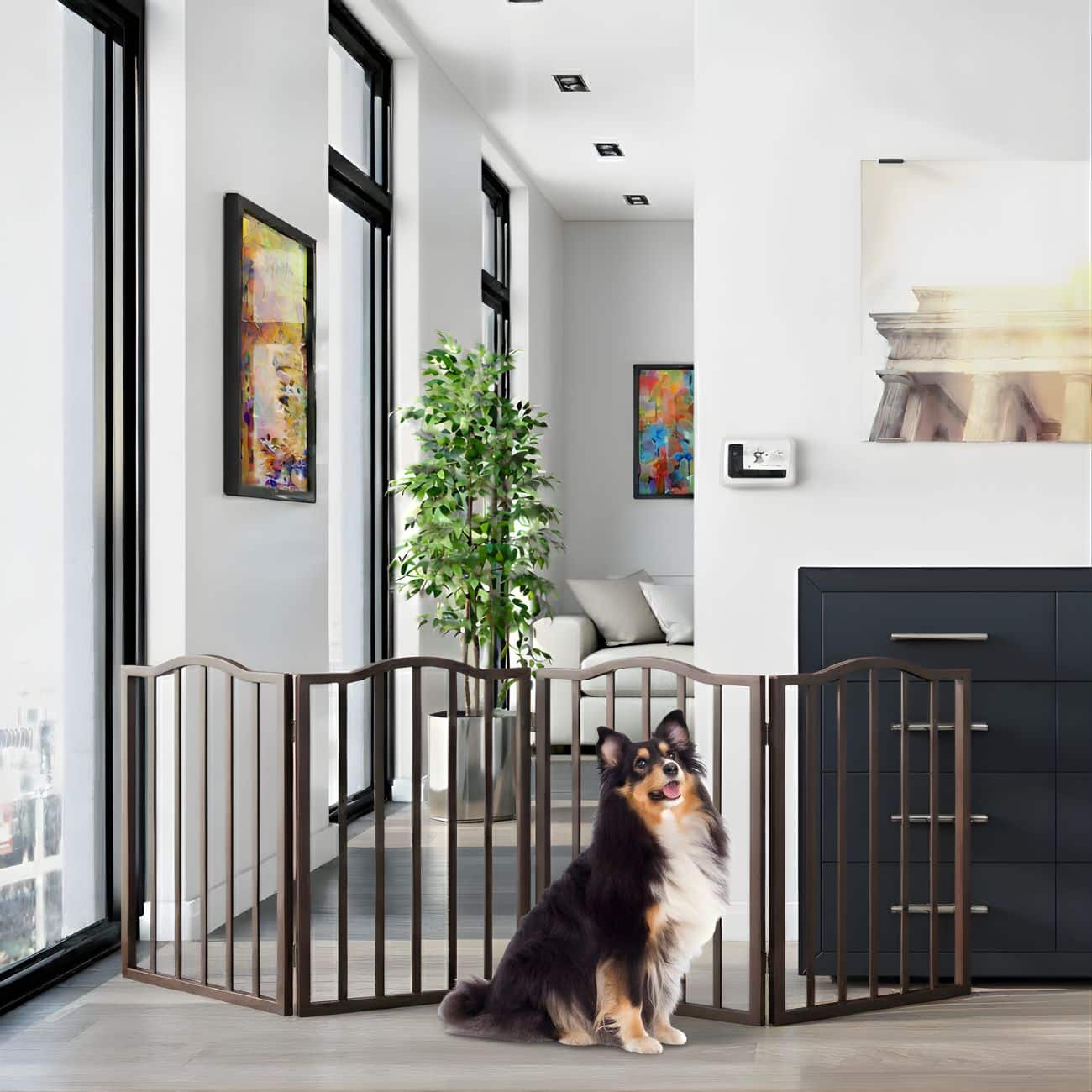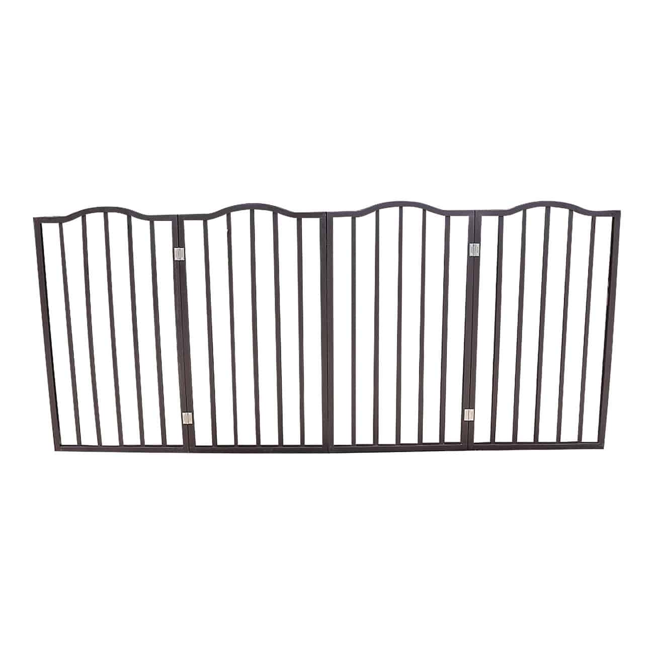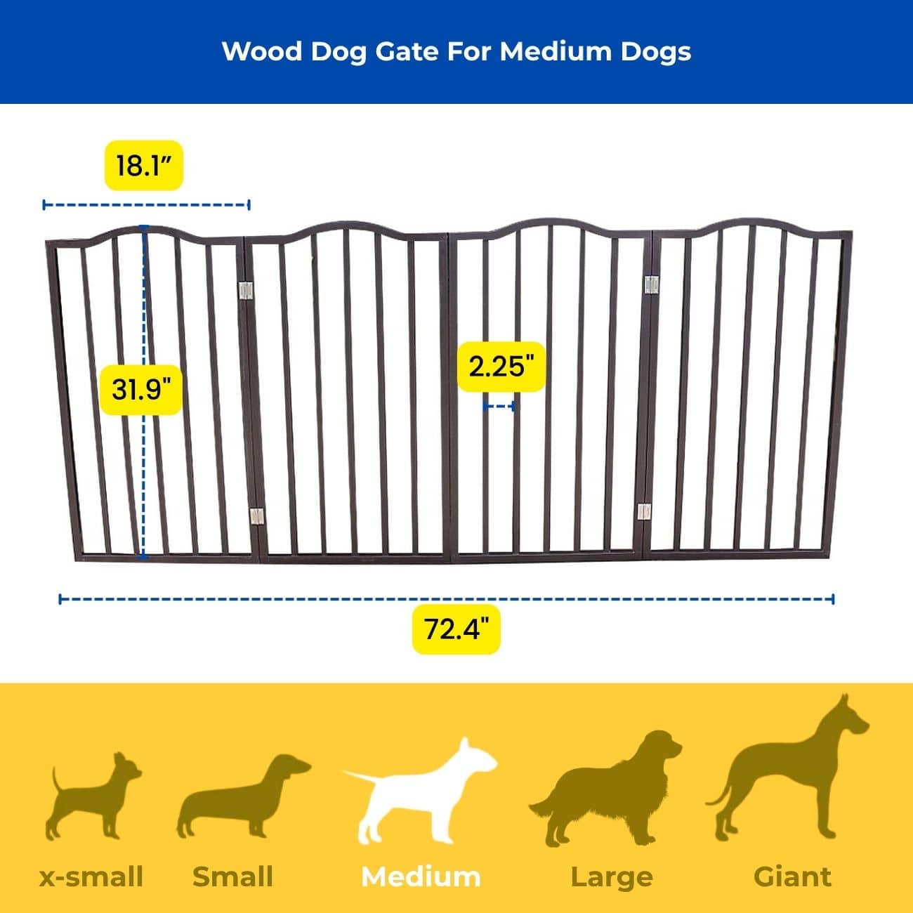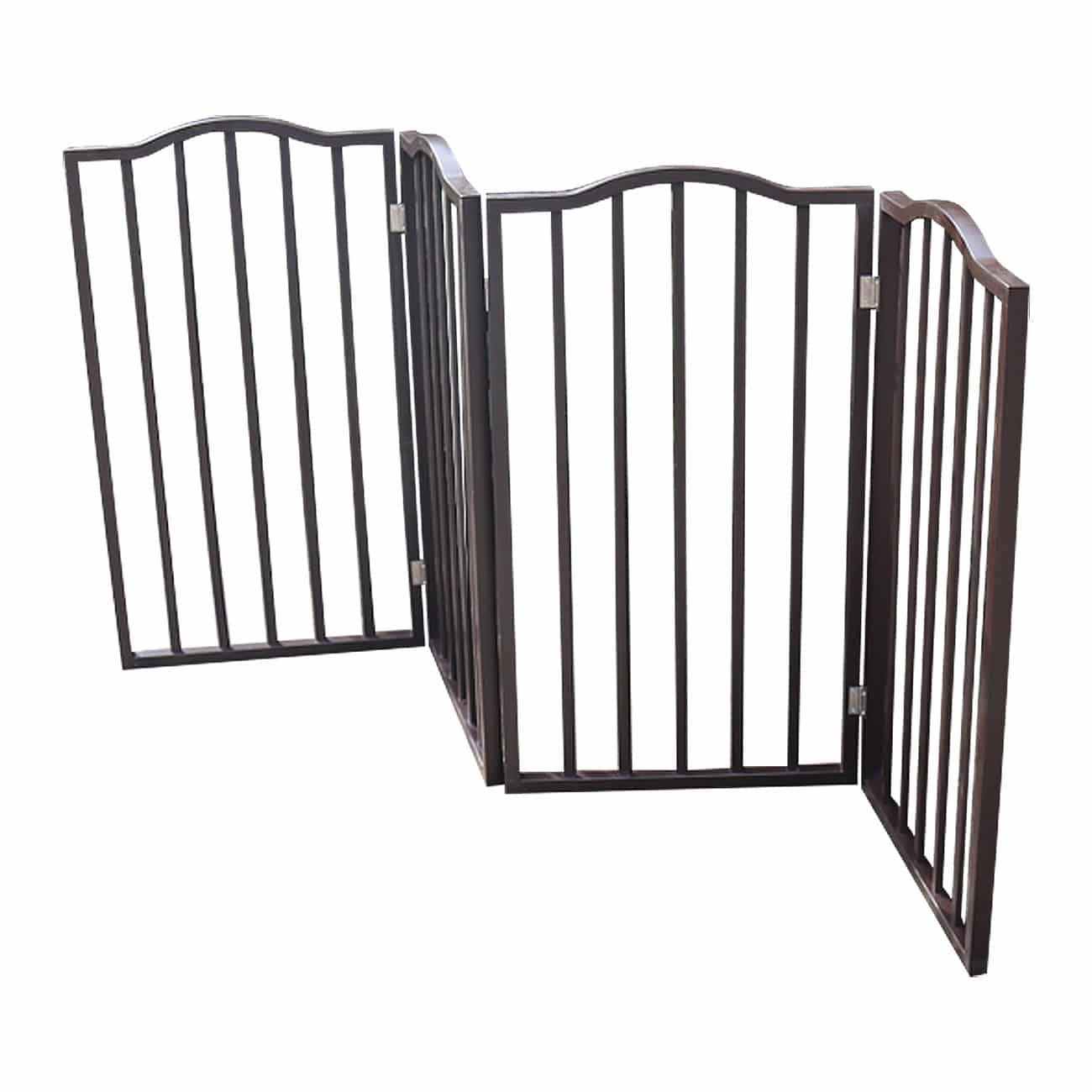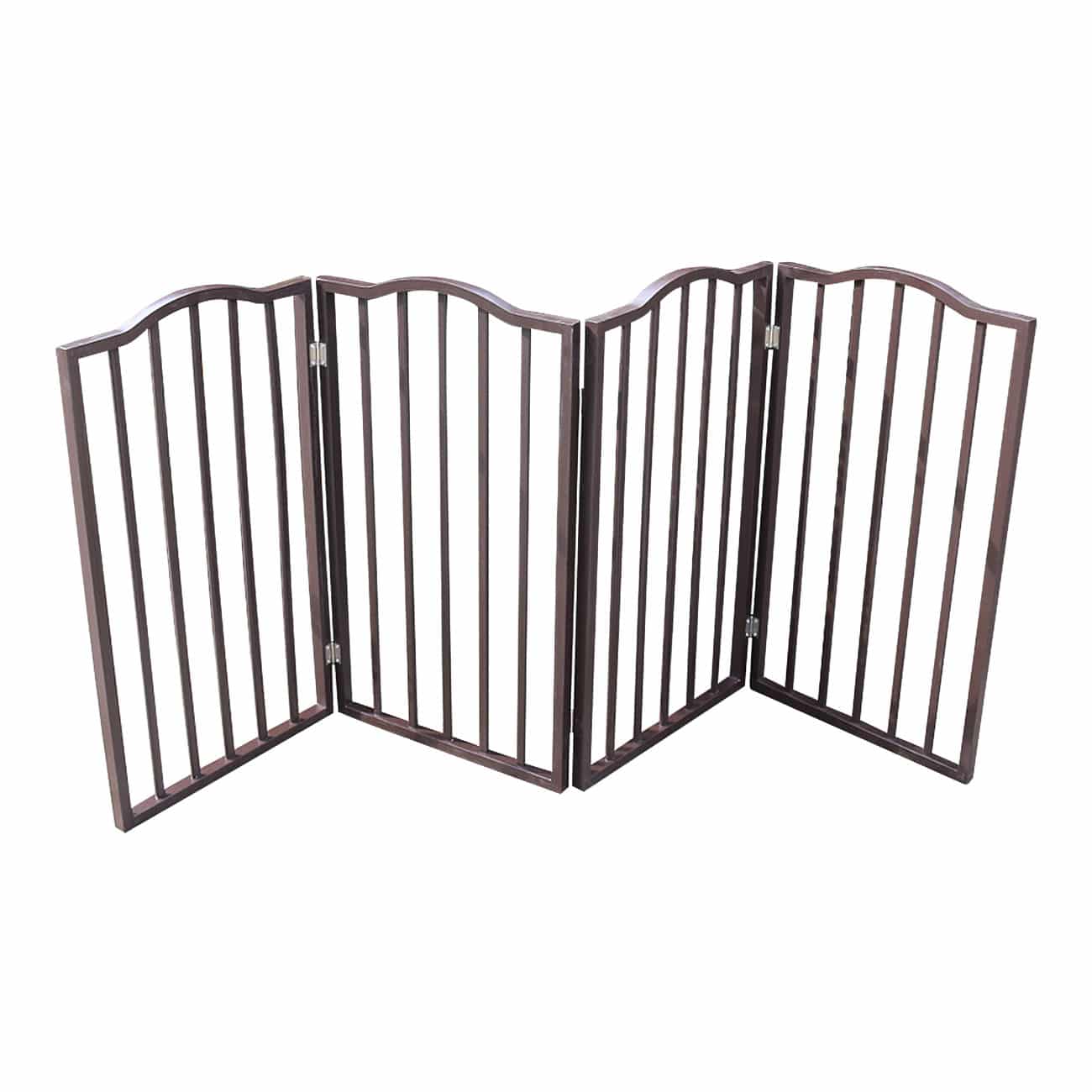 If you’re looking for a pet barrier to help you keep your dog out of certain areas in your home while complementing your décor, this stylish wooden dog gate provides for all your canine containment needs. Built from durable, espresso-finished hardwood and paired with sturdy dual hinges, this lightweight gate offers long-lasting stability and modern appearance without drilling or wall marks. These flexible hinges allow you to create custom configurations like Z shapes that fold compactly for storage. Suitable for doorways, hallways, and bottom-of-stair barriers, it expands to 72 inches wide and stands 32 inches tall to fit many different-sized openings.