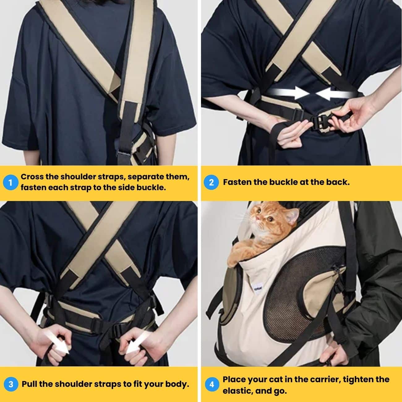This convenient cat carrier backpack features padded crossed (or X-shaped) straps that do not hurt your shoulders and back. Compared with rucksack straps, they are also adjustable to fit different body sizes and shapes.