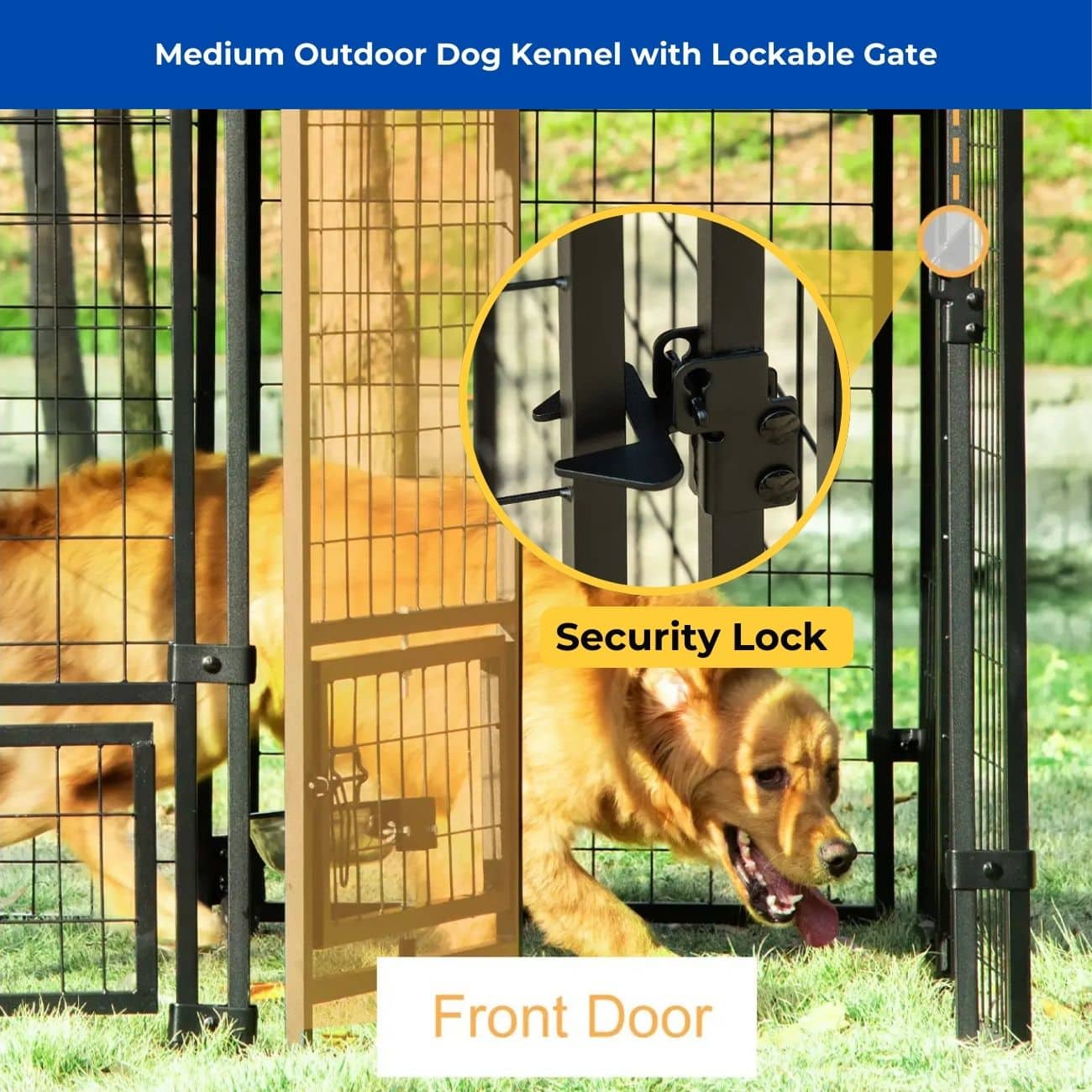 • Heavy Duty Metal Frame For Daily Use: This metal dog kennel uses a powder-coated steel frame and welded mesh panels. The structure resists rust, chewing, and outdoor weather for long-term durability.