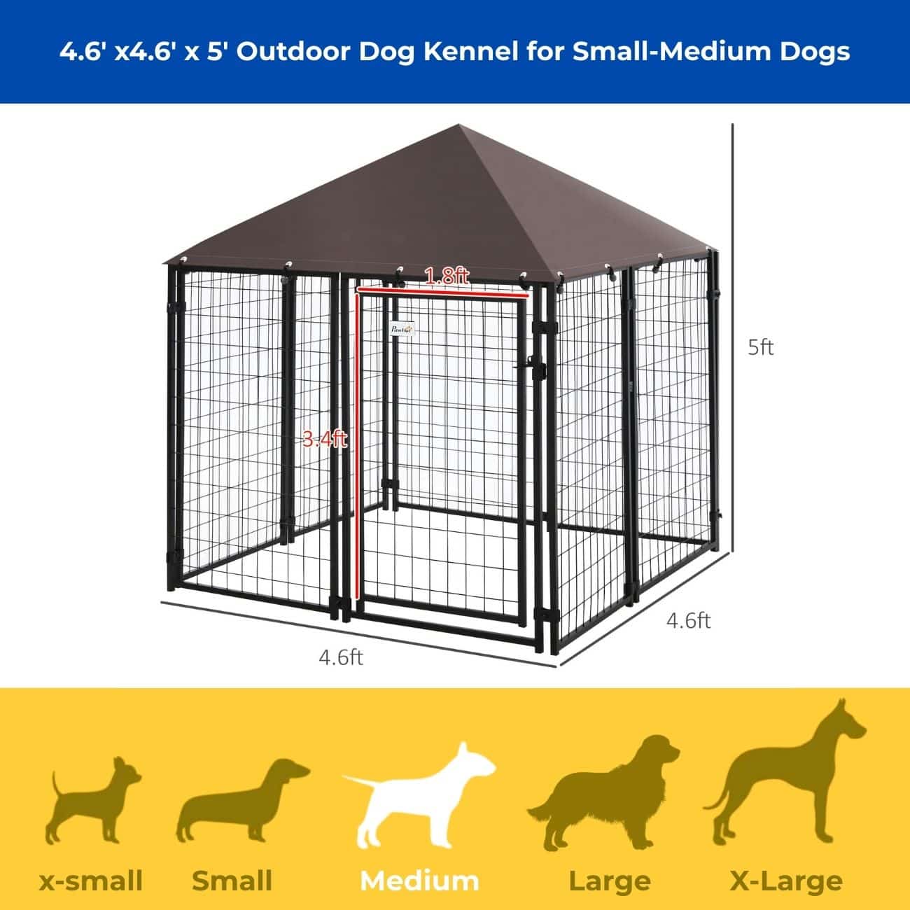 PawHut Medium Welded Wire Outside Dog Kennel (4.6′ x 4.6′ x 5′)