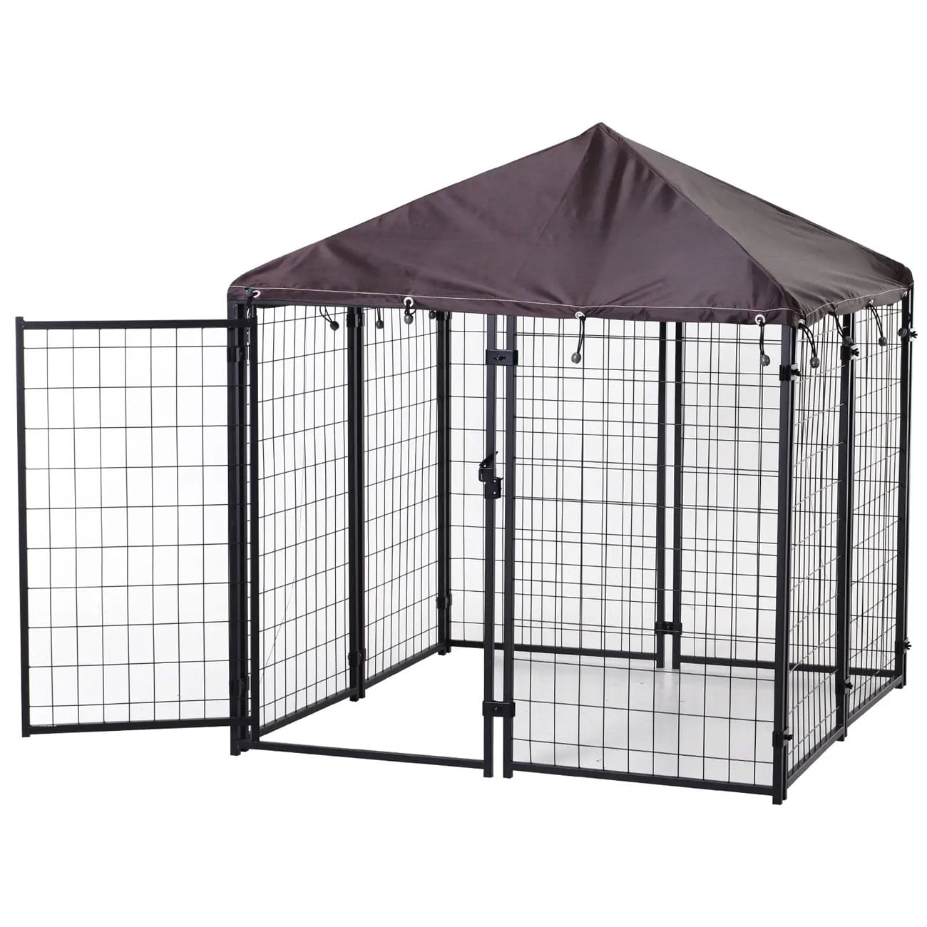 • The outdoor kennel is made with welded wire panels and a secure latch for an escape-proof design.