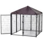 - The outdoor kennel is made with welded wire panels and a secure latch for an escape-proof design.